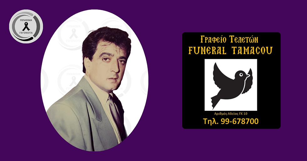 Η κηδεία τελείται υπό την ευθύνη και εποπτεία του Γραφείου Τελετών "FUNERAL TAMACOU"
